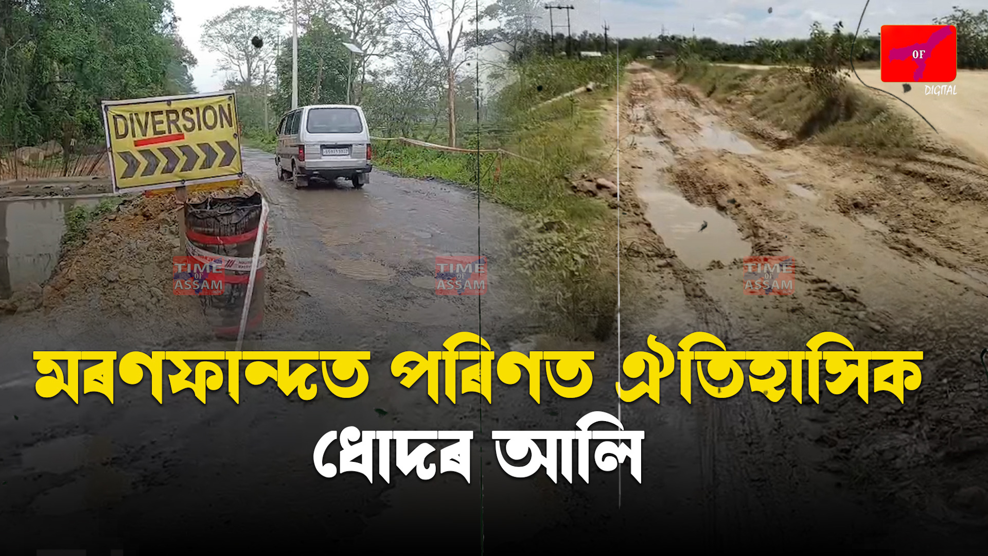 পূৱ যোৰহাটৰ লাহদৈগড় ৰাজৈ সংযোগী পথৰ দুৰৱস্থা