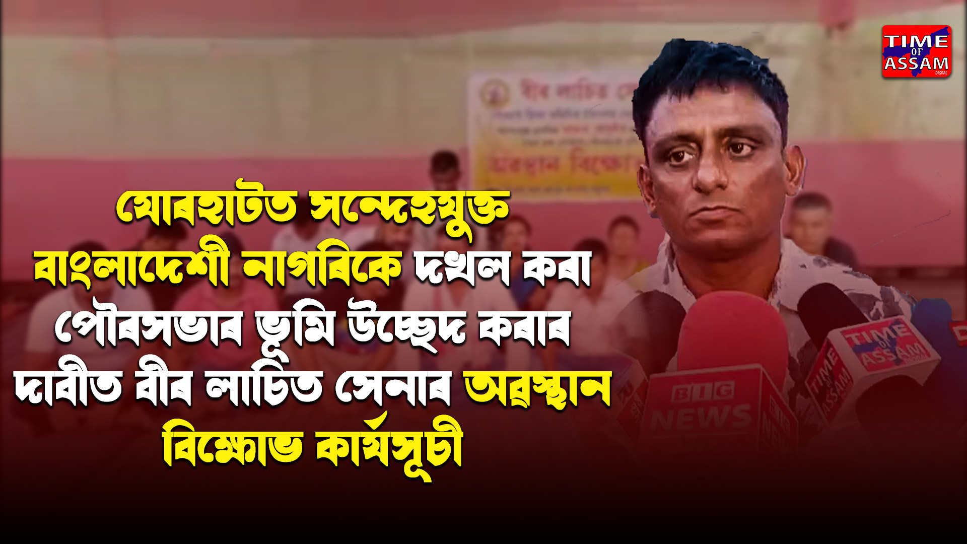 যোৰহাটত সন্দেহযুক্ত বাংলাদেশী নাগৰিকে দখল কৰা পৌৰসভাৰ ভূমি উচ্ছেদ কৰাৰ দাবীত বীৰ লাচিত সেনাৰ অৱস্থান বিক্ষোভ কাৰ্যসূচী